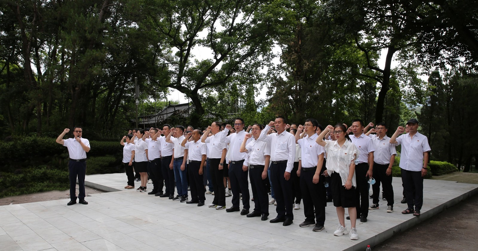 首先,大家來到永康方巖,在抗日戰爭期間遭國民黨殺害的劉英烈士陵園,向劉英等烈士墓敬獻花籃,表達對先烈們的崇敬和懷念之情;重溫入黨誓詞,面向黨旗宣誓,牢記入黨時的莊嚴承諾。